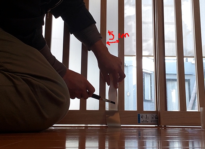 거래처의 시트지 전문집에 상황을 이야기 하고 사이즈에 맞게 재단을 해온 반투명 회색 선팅 시트지를 디자인 파티션도어 창살 사이에 붙이기로 하고 작업에 들어갔습니다.