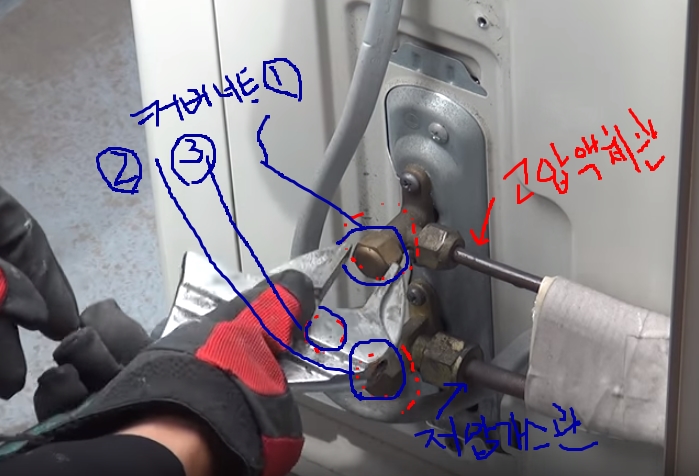 기존에 설치되어있는 에어컨을 탈착하는 작업을 할때 에어컨 실내기와 실외기를 분리할 필요가 있습니다.