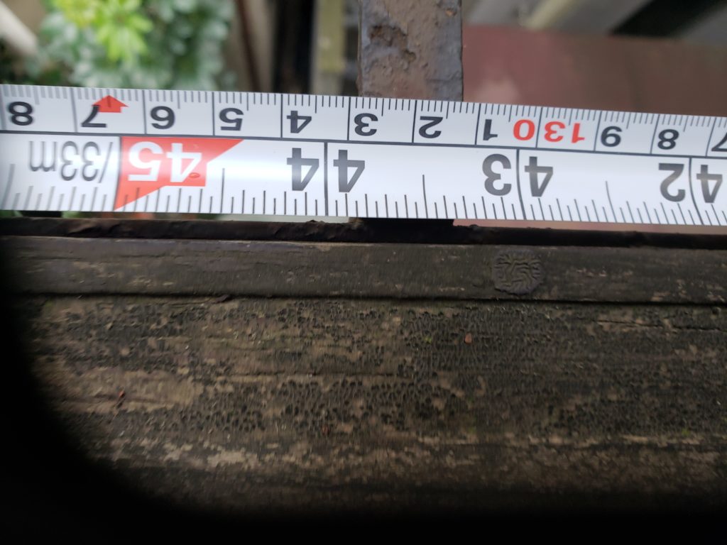 줄자 아래 사진 보세요. 이렇게 썩어 있습니다. 결부된 창문 보호 틀은 못이 빠져서 너덜 너덜 상태