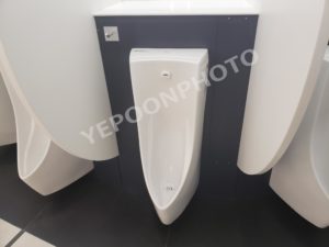 바닥으로 잘 오물이 튀지않게 고안된 옆 칸막이와 매칭되는 변기 디자인