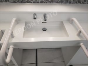 휠체어를 탔을때 딱 얼굴과 가슴높이의 일반인에게는 약간 낮은 세면대