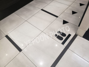 번쩍거리나 미끌거리지 않는 600각 타일과 정밀하게 재단된 검정색 타일로