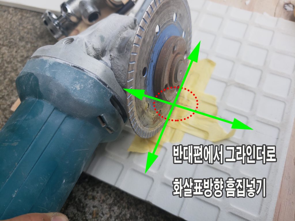 그때그때 봐가면서 떨어져 나가는 타일크기 주변환경을 봐가면서 조율하면서 그라인더 날집을 넣습니다.