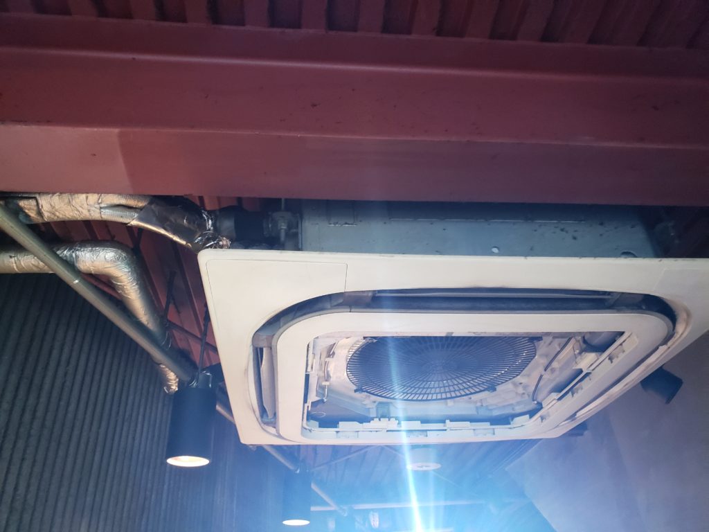아래사진은 천정에 설치되어있는 이 현장의 해체전 에어컨입니다. 사다리를 가지고 몇칸만 오르면 주변을 볼수있고 손이 닿습니다. 정기적인 청소가 가능합니다.