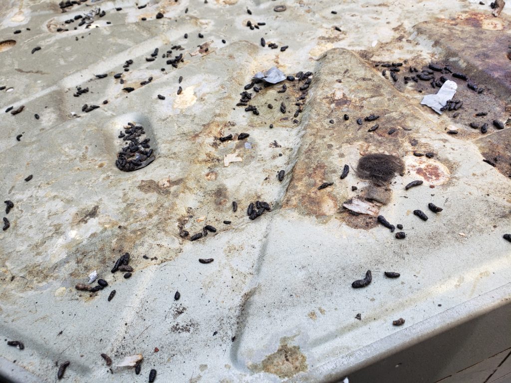 쥐의 배설물[변]입니다. 업무용 에어컨 교체공사를 하면서 사진을 찍었습니다만, 이 사업장은 다름아닌 시부야에서도 유명한 라면집!