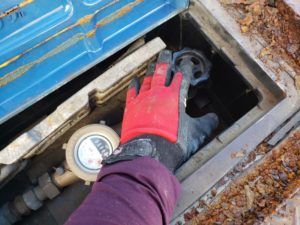 水道メーターを全開して試験水出し、作業箇所の目視、触り感触点検を済ませて