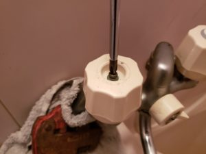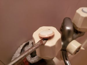 蛇口ハンドルを先にマイナスドライバーを使い、蓋を取って