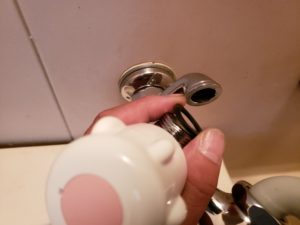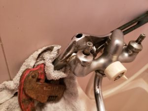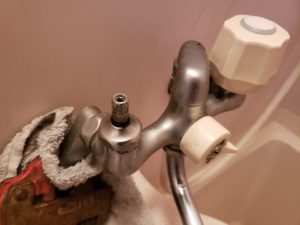 管理会社の話だと他の水道屋がきて何回もパッキンを変えたり、中の部品を変えてみたりしたようなんですが、単なるパッキン交換の問題ではなく、何らかの理由で内側のネジキリ部分が削られていたり、傷がついていたりしていました。まるごと変えちゃうというような見積で管理会社に出してみると、その間にもシャワーと普通のじゃぐちの切り替えがまったくできないと入居者の方から今月だけであのユニットバスの水栓で3回程度クレームがあったようで